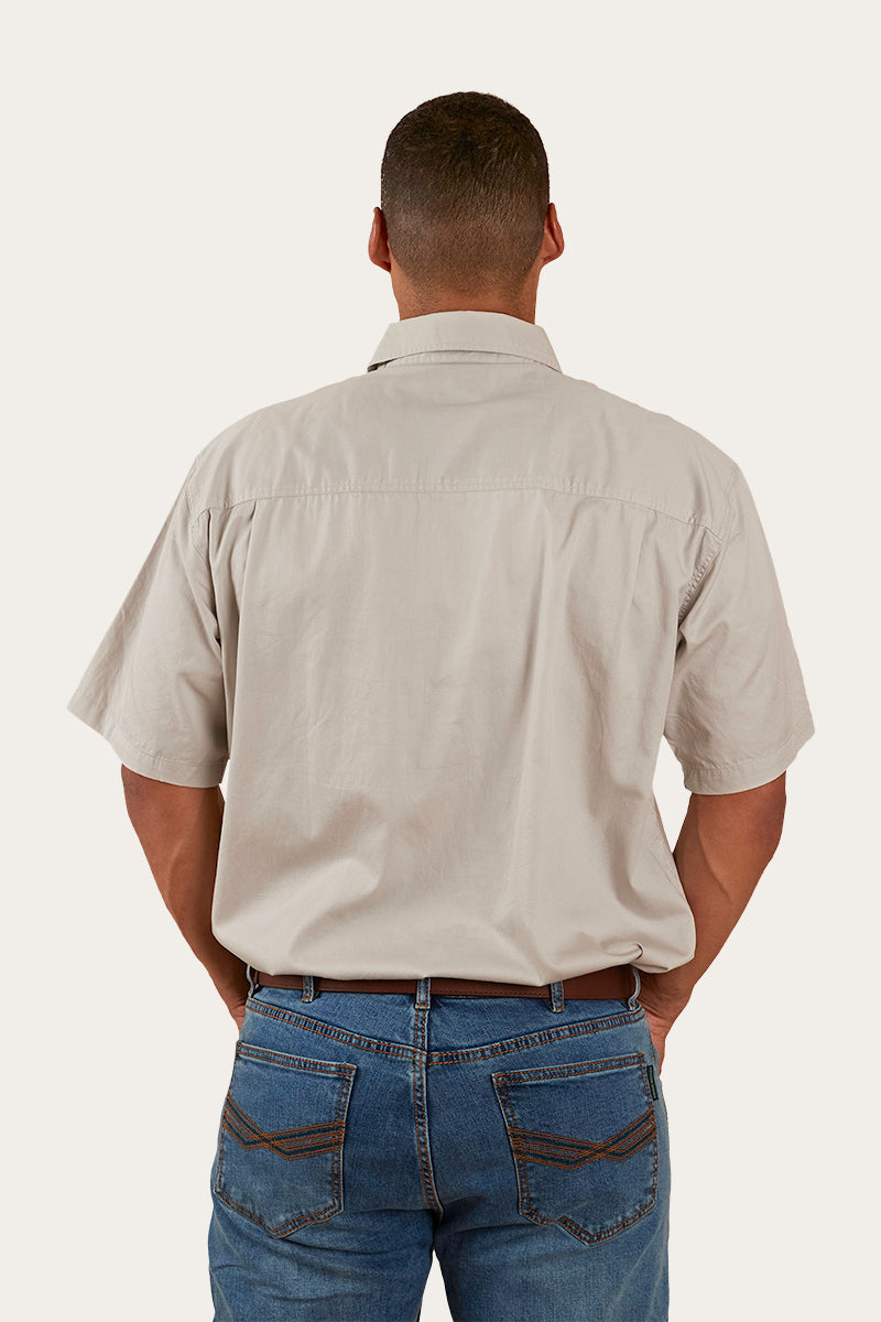 Pack Saddle Mens Short Sleeve Half Button Work Shirt - Beige