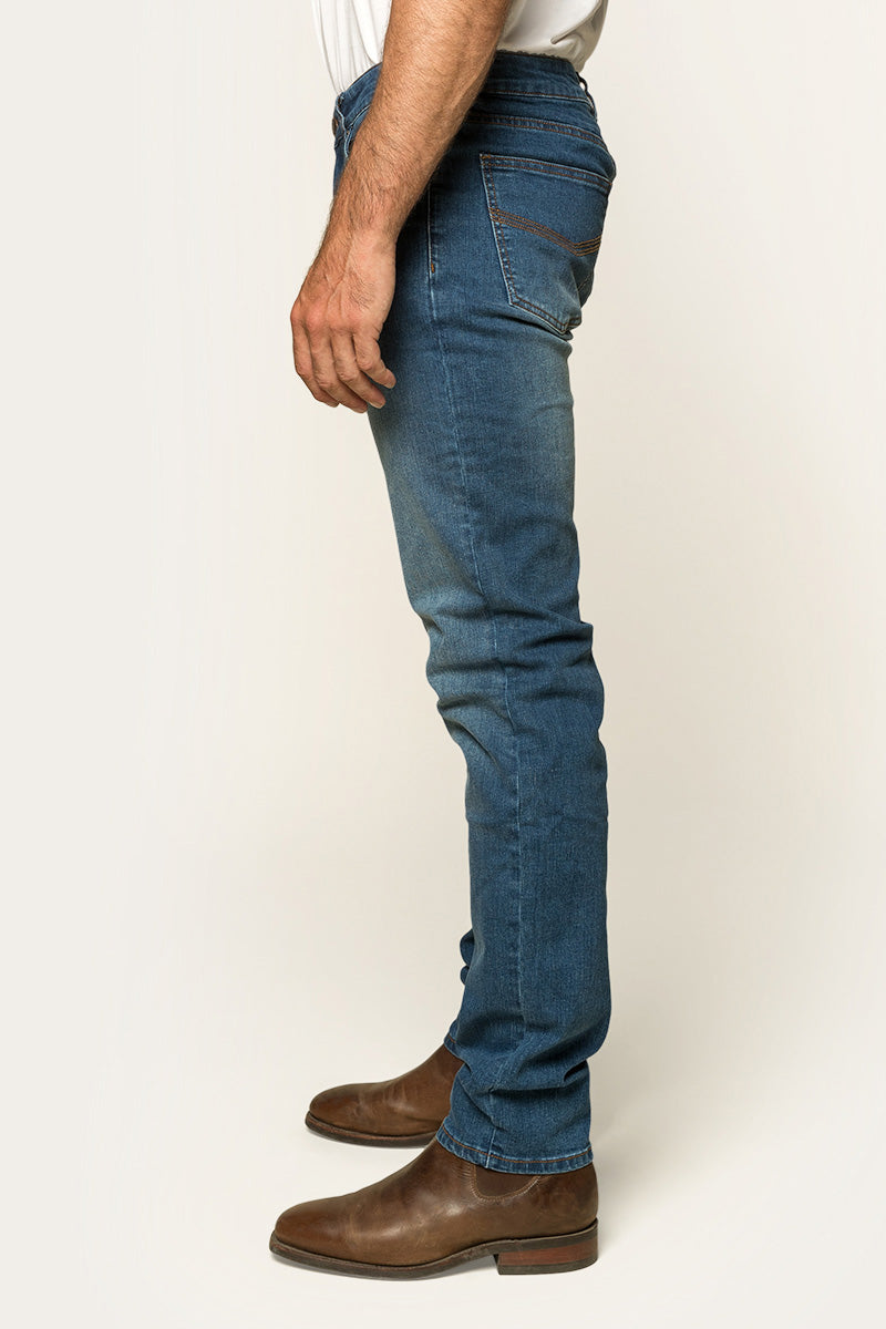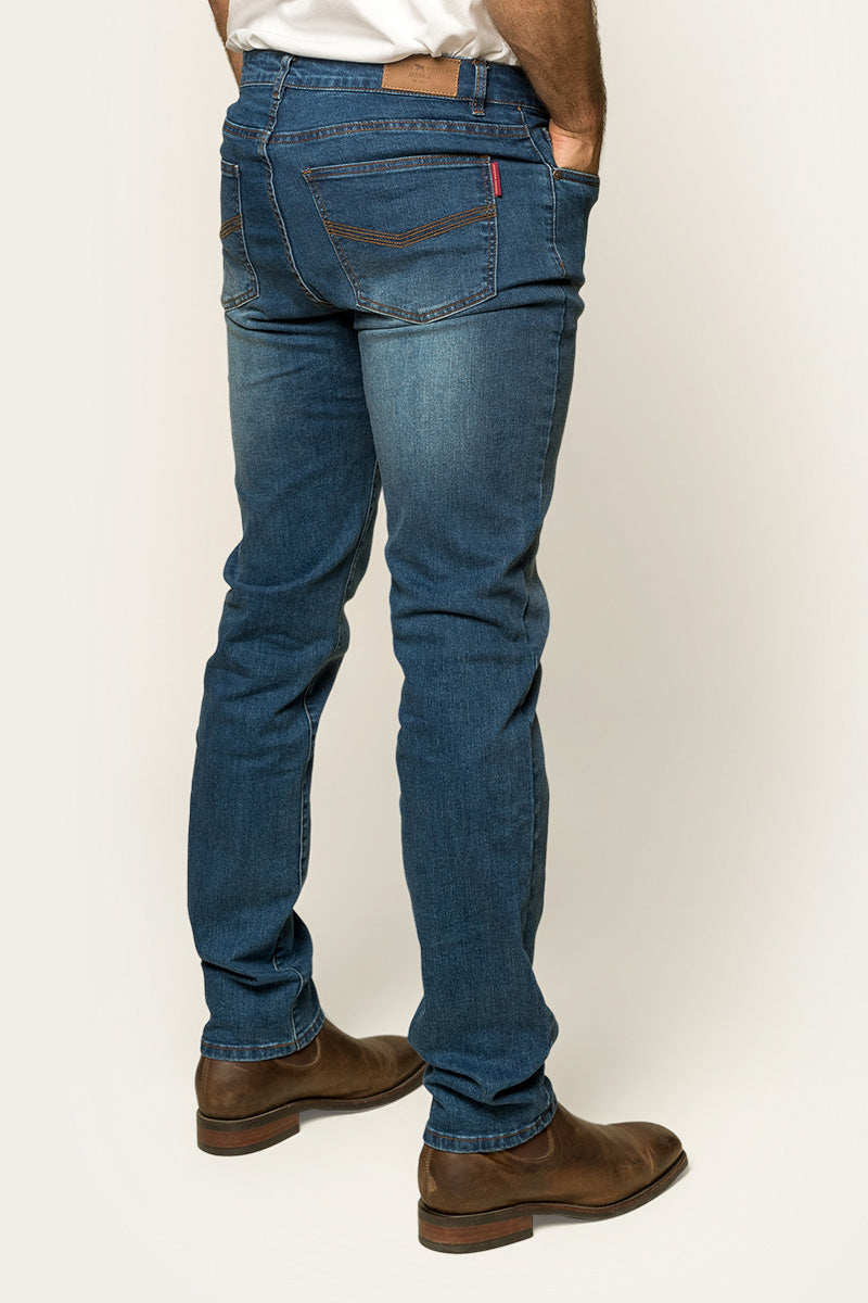For men who like a streamlined yet comfortable fit, Burke Men’s Tapered Slim Leg Jeans are an excellent choice. These jeans are cut with our Ringers Western mid-rise waist, designed to sit just right—around the midsection, below the belly button. Made from a premium cotton blend, they offer a balance of durability and flexibility, thanks to a touch of elastane woven in. The tapered leg design provides ample room in the seat and thighs before narrowing down to a neat ankle opening, making them ideal for pairing with boots. Complete with classic five-pocket detailing, signature bull embroidery on the coin pocket, and a branded leather patch, Burke men's jeans are ready for any adventure. Slide into your Kununurra boots, and you’ll have a stylish, rugged look that’s built to last.
