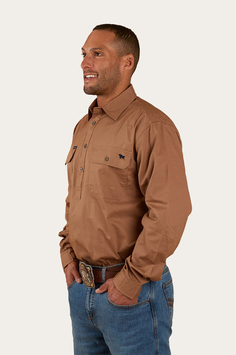Ringers Western’s King River Mens Half Button Work Shirt delivers the quality and resilience that hard work demands. Crafted from 100% premium cotton, these work shirts are breathable and lightweight, perfect for staying cool in warm conditions. With a UPF 50+ rating for sun protection, it keeps you safe during outdoor work. The loose fit allows for freedom of movement, and the half-button front enhances ventilation, while front pockets provide convenient storage for essentials—making this shirt an essential item for any work wardrobe.