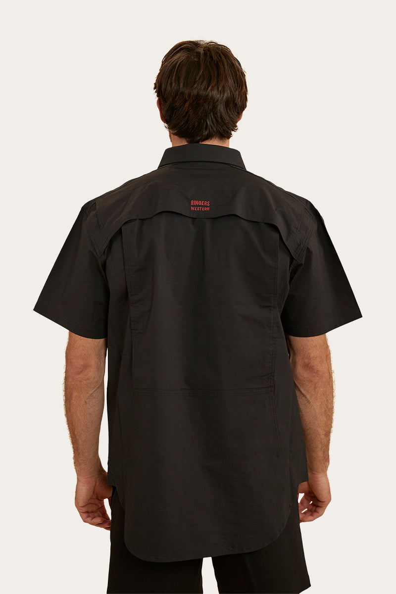 The Ringers Western Workwear range is built for durability, and the Bulgarra Men's Ripstop Full Button Work Shirts is are no exception. Made from a high-quality cotton and elastane blend, this loose-fit shirt offers a unique ripstop grid pattern designed to resist tearing, making it a great choice for rugged work environments. With breathable short sleeves, it’s comfortable for physically demanding jobs and outdoor work. This men’s work shirt includes ventilation features such as mesh-lined underarms and back yoke vents for airflow. Complete with utility chest pockets, Ringers Western embroidered details, and a UPF 50+ rating, it's well and truly ready to stand up to any task.