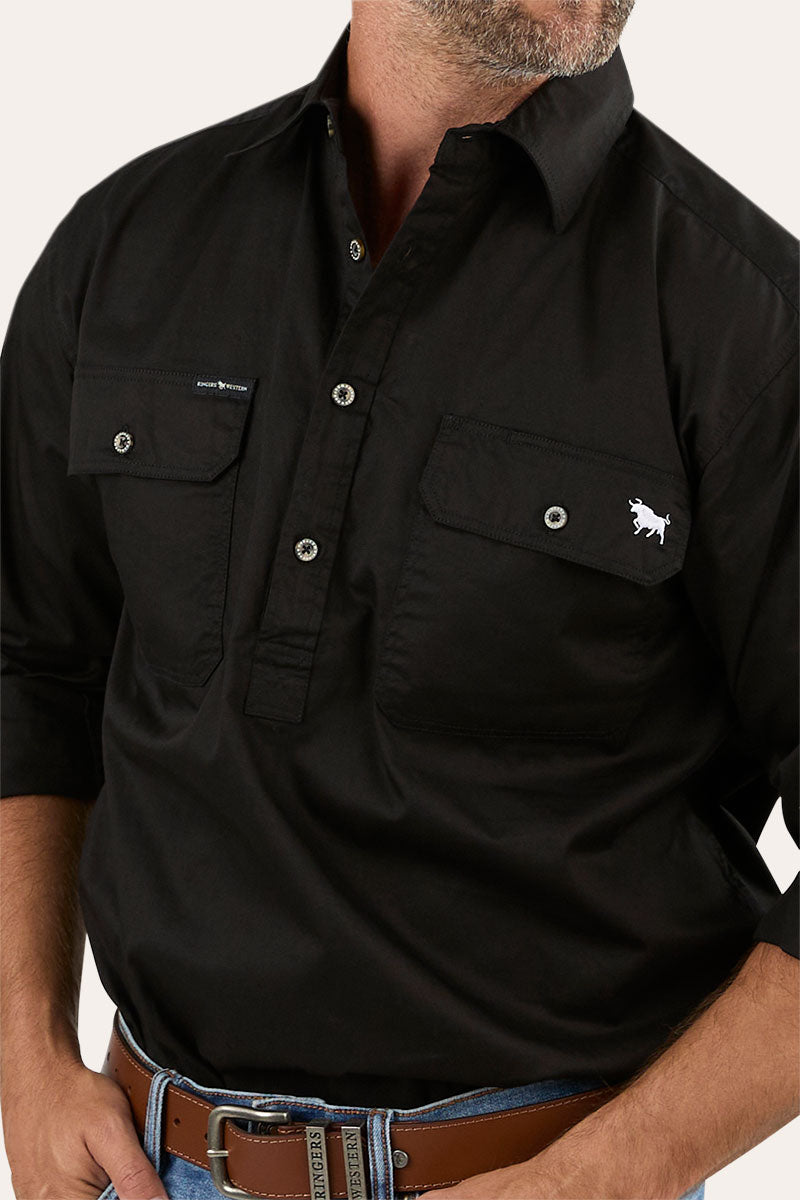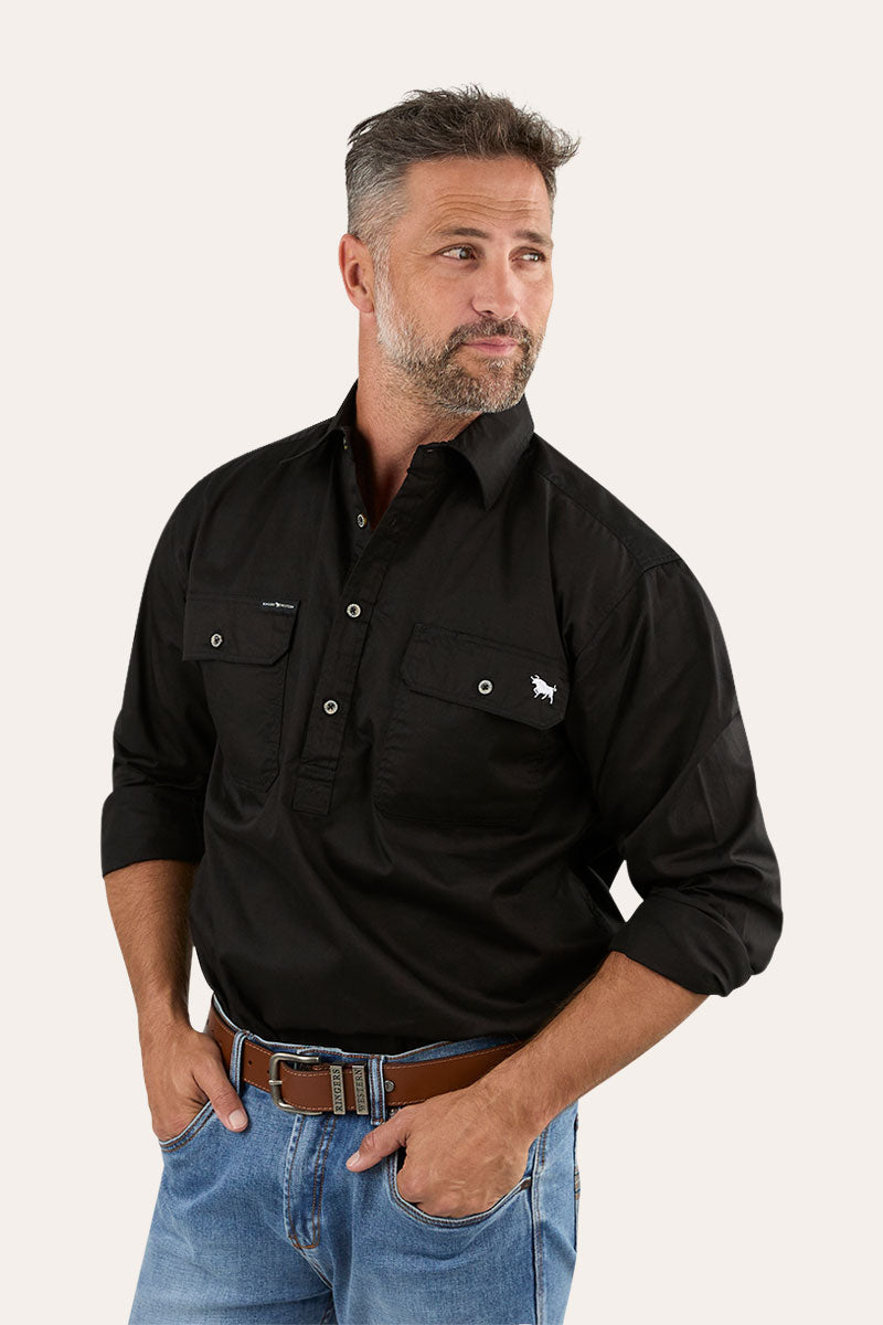 For men who need work shirts that combine performance with comfort, Ringers Western introduces the King River Mens Half Button Work Shirt. Constructed from soft, durable 100% cotton, this work shirt for men is designed to be breathable and light, even in the heat. With a UPF 50+ rating, it offers outstanding sun protection, while the half-button closure promotes airflow for extra comfort. Featuring a loose fit and functional front pockets, this men's work shirt is a reliable and practical choice for demanding work environments.