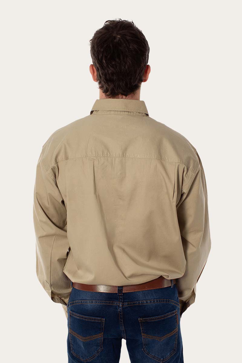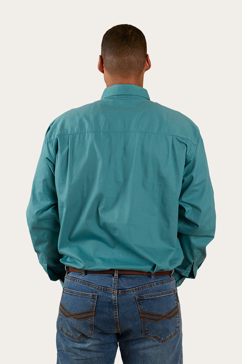 For men who need work shirts that combine performance with comfort, Ringers Western introduces the King River Mens Half Button Work Shirt. Constructed from soft, durable 100% cotton, this work shirt for men is designed to be breathable and light, even in the heat. With a UPF 50+ rating, it offers outstanding sun protection, while the half-button closure promotes airflow for extra comfort. Featuring a loose fit and functional front pockets, this men's work shirt is a reliable and practical choice for demanding work environments.