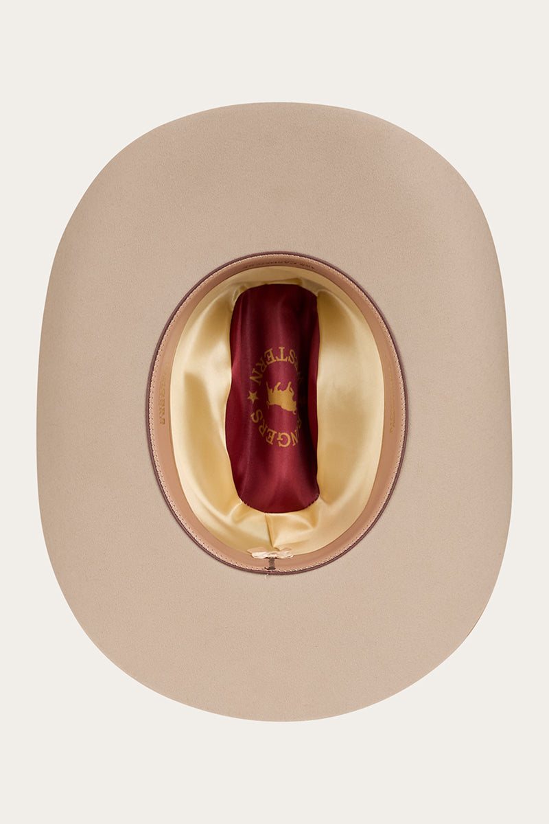The classic Cattleman crown creates a bold, traditional silhouette that honours authentic cowboy heritage. Inside, a satin-lined crown enhances the sense of luxury, while the genuine leather sweatband offers moisture control, ventilation, and a secure fit for extended wear.