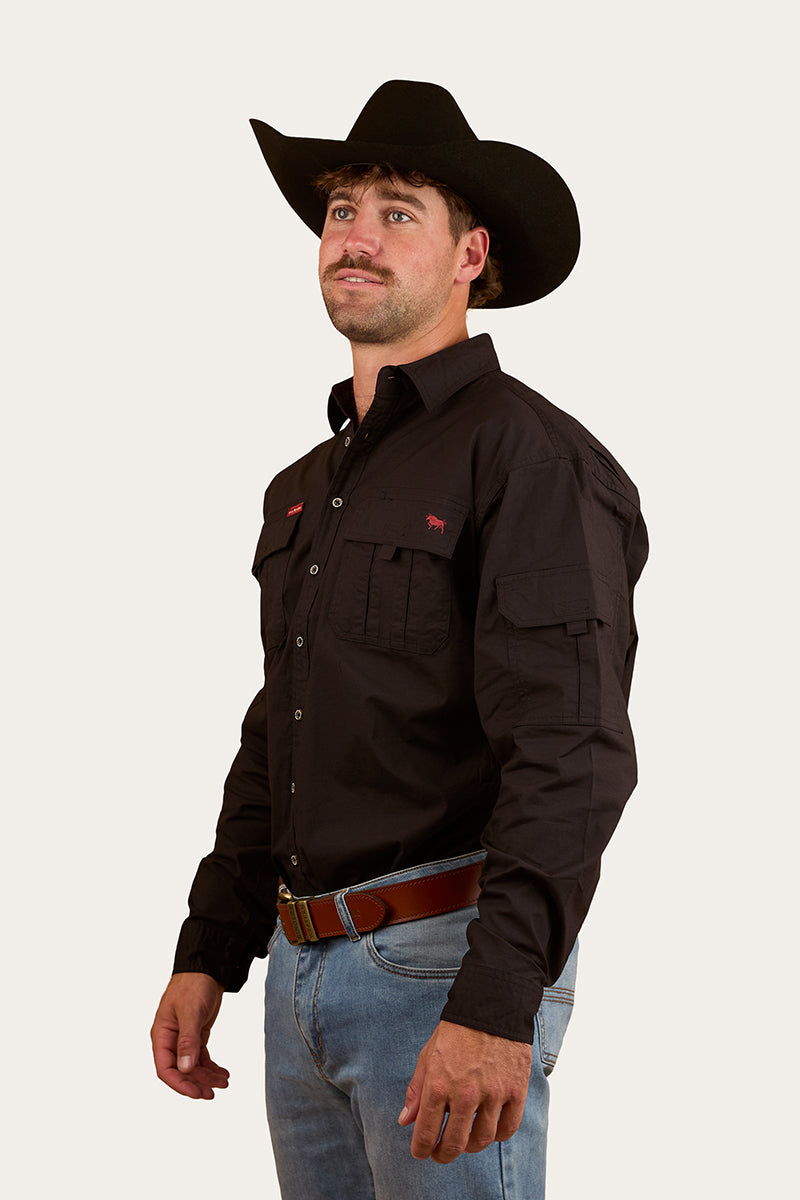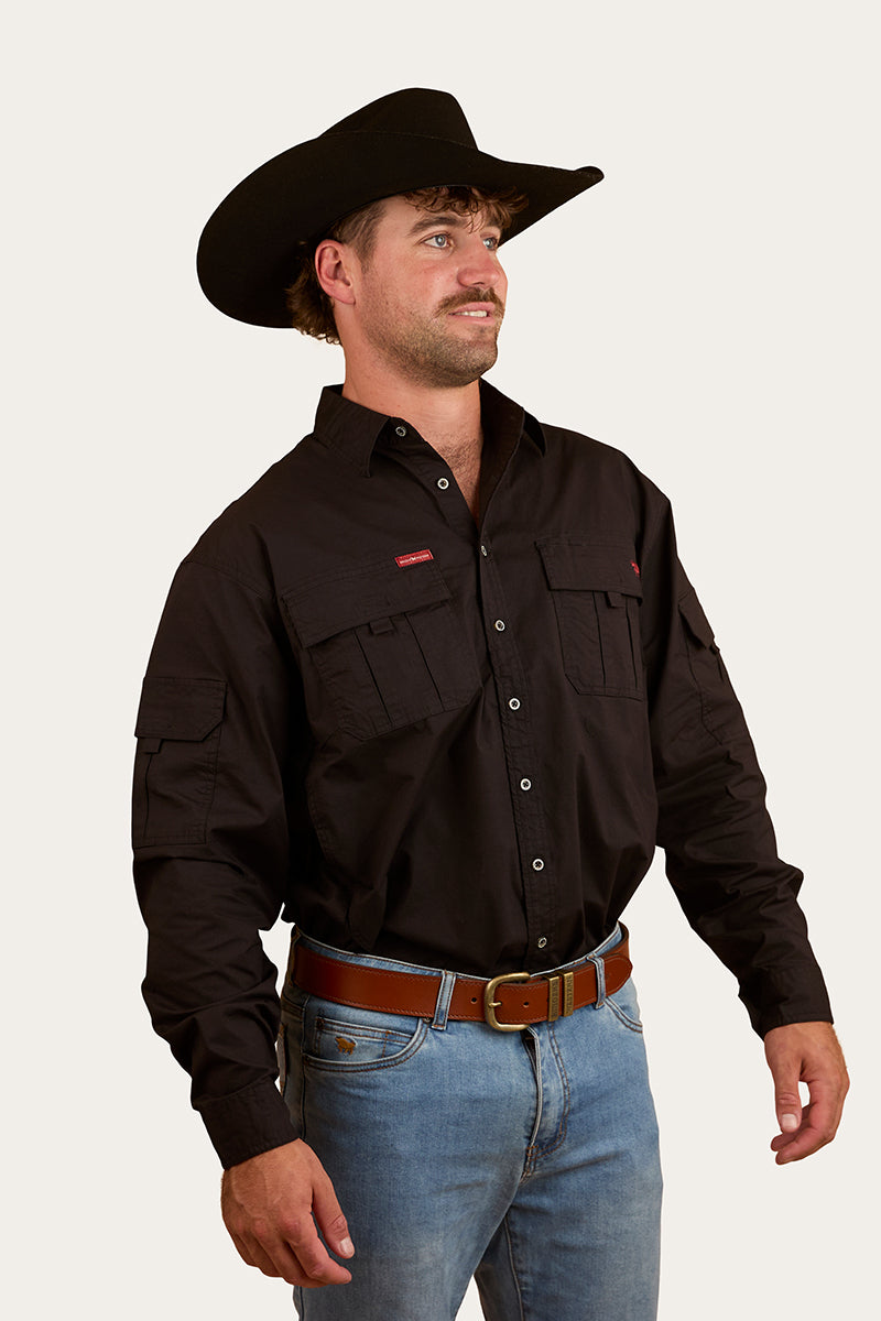 Pilbara Mens Ripstop Full Button Work Shirt - Black