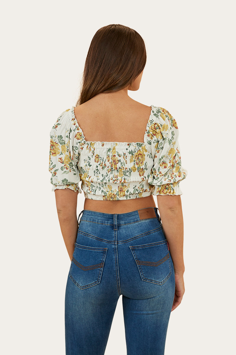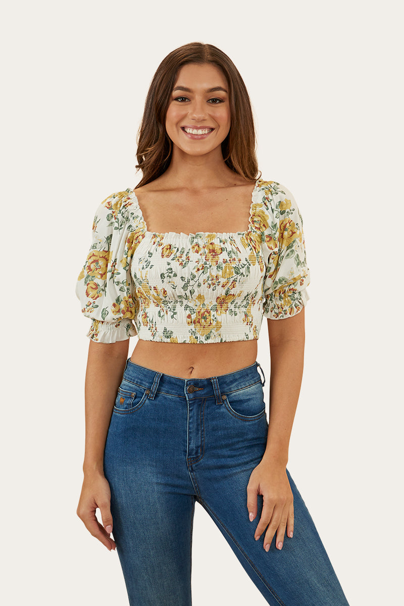 Rosabel Womens Shirred Top - White/Yellow