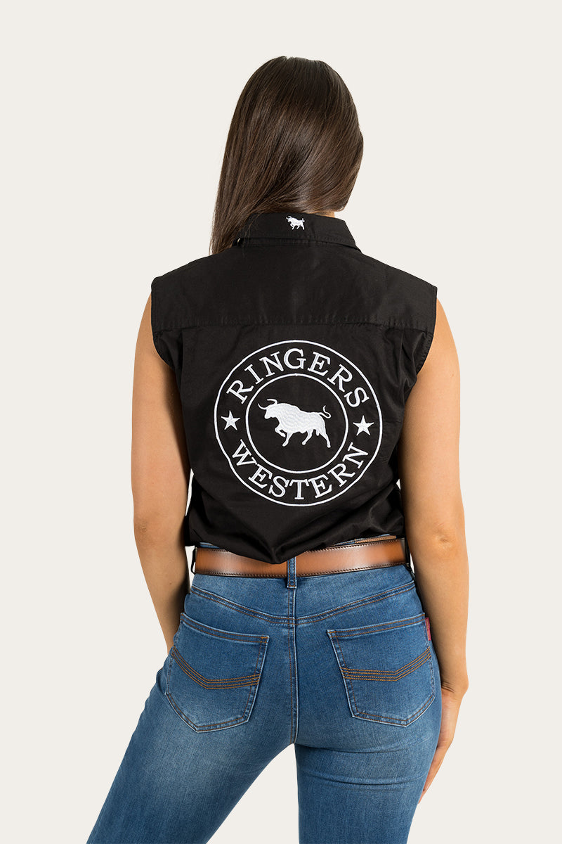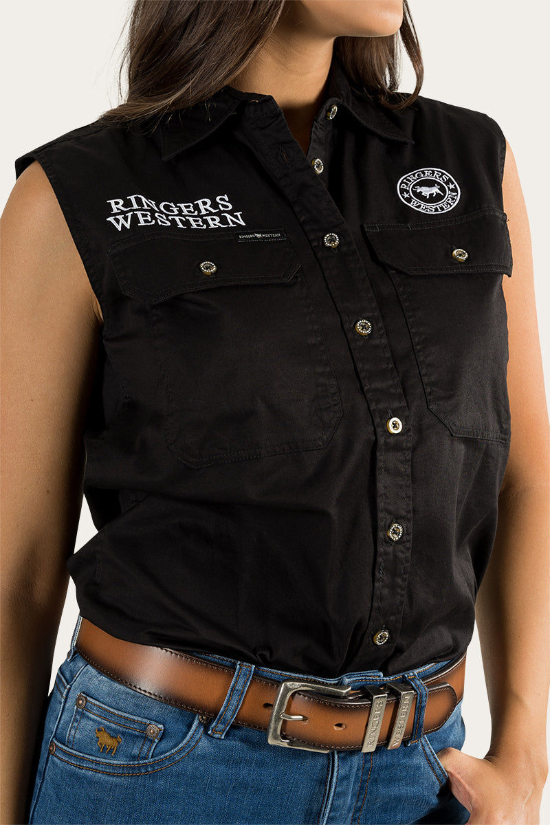 Signature Jillaroo Womens Sleeveless Work Shirt - Black/White