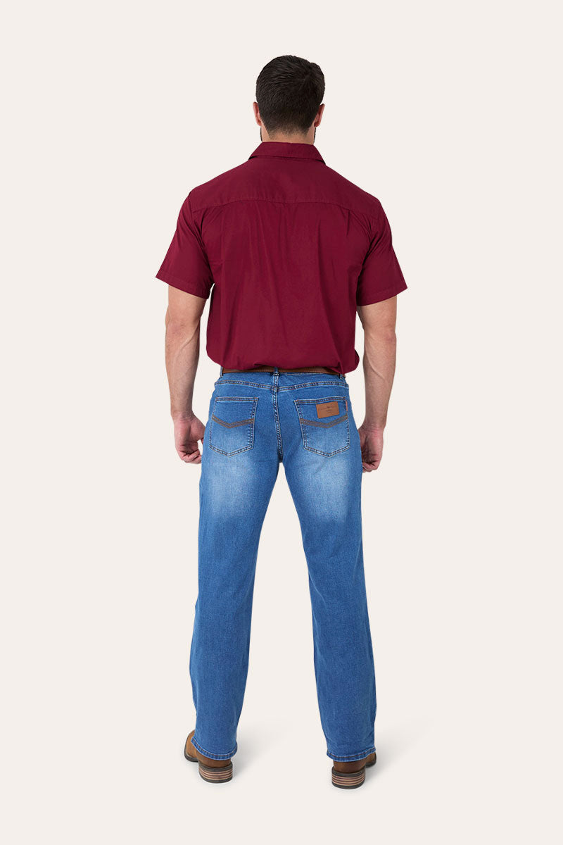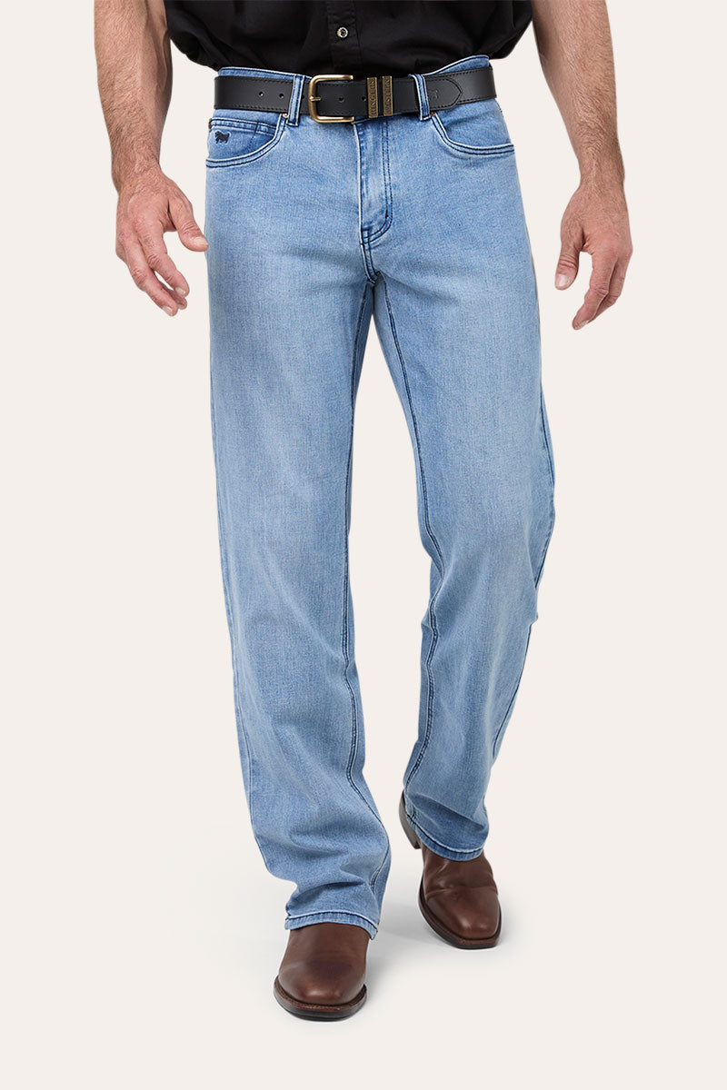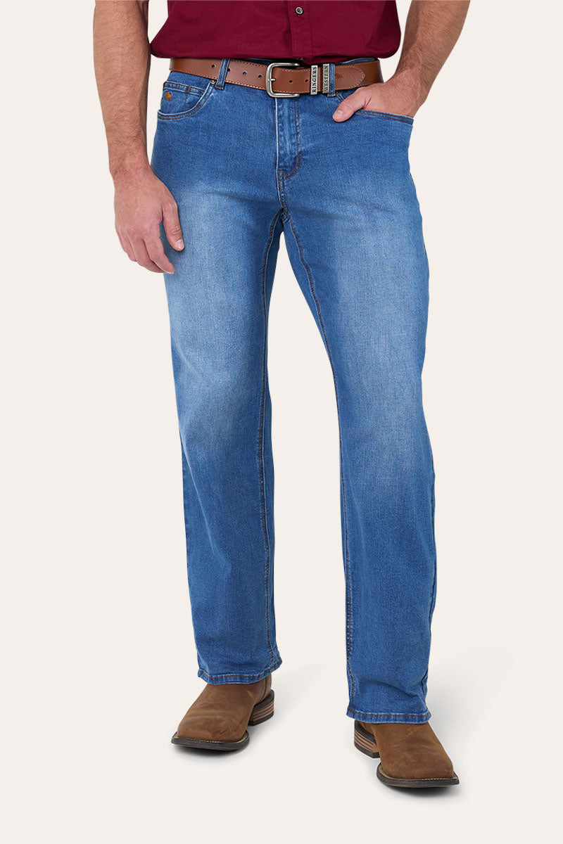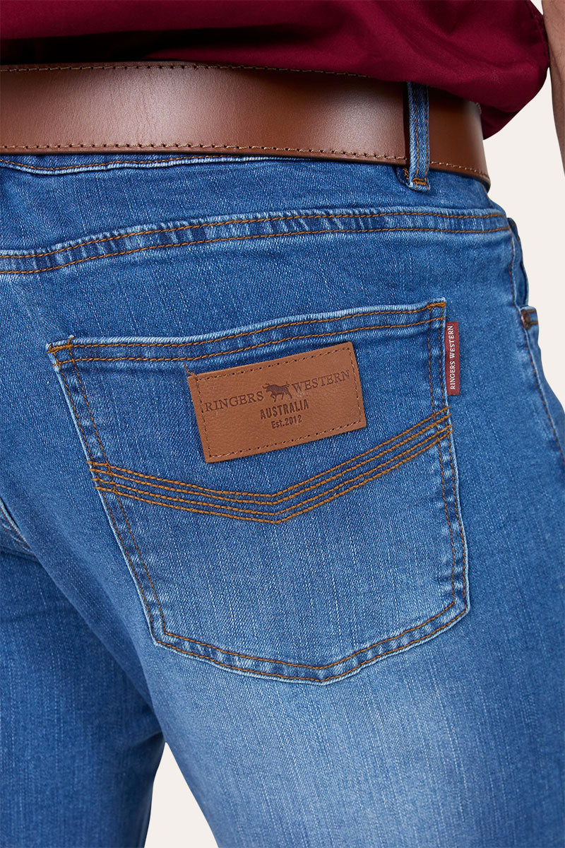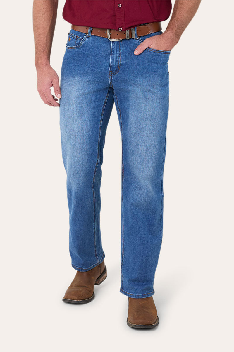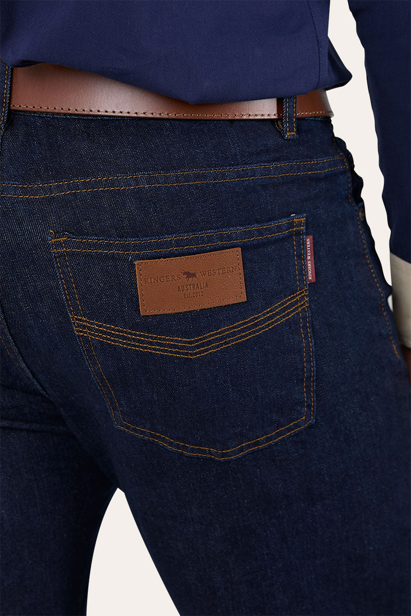 When it comes to traditional 'cowboy-style' denim jeans, the Ringers Western Sturt is all that and more. Made with ultra-high-quality stretch denim and with a relaxed fit through the hip, seat, and thigh, the Sturt Men's Leg Jeans are a 'must-have' for every cowboy's wardrobe.