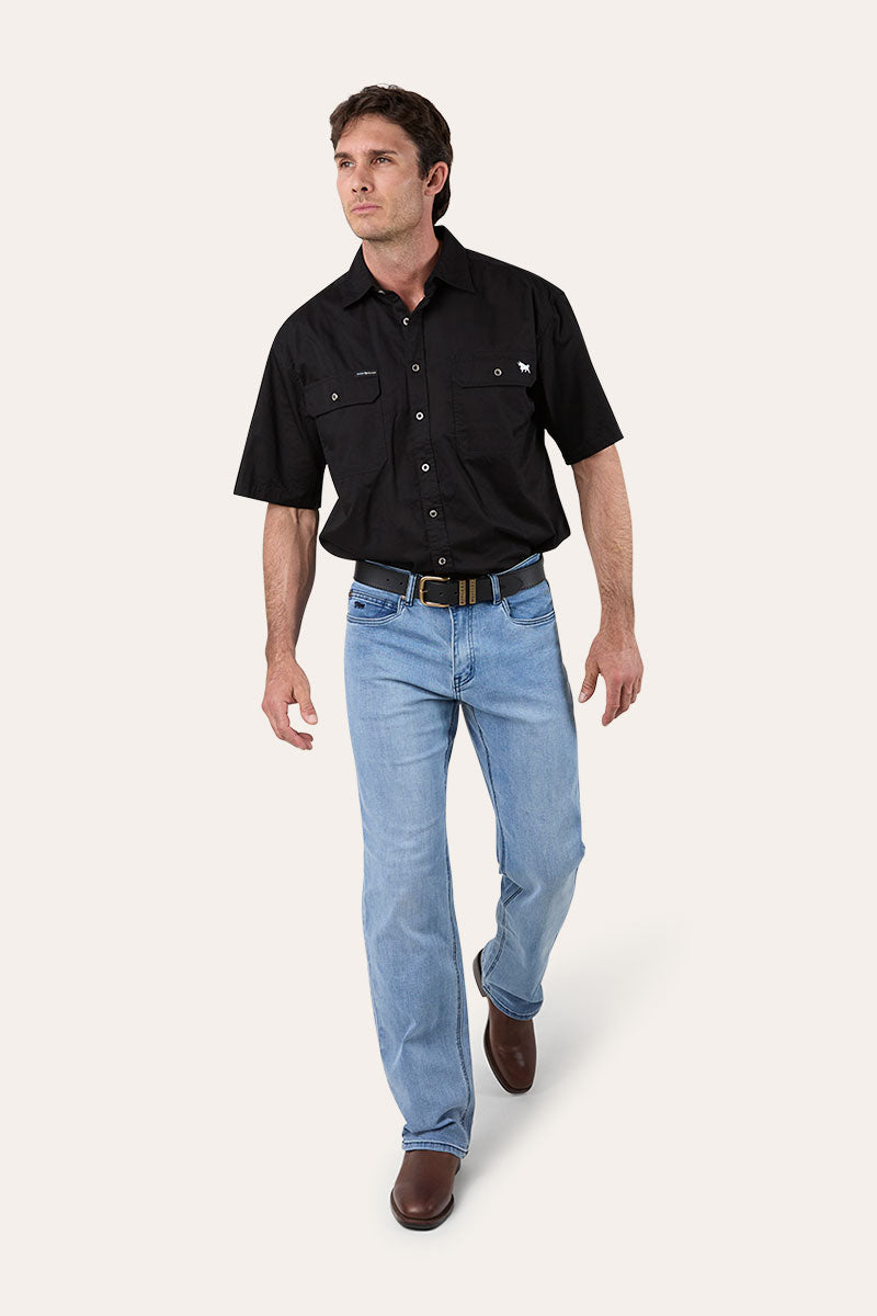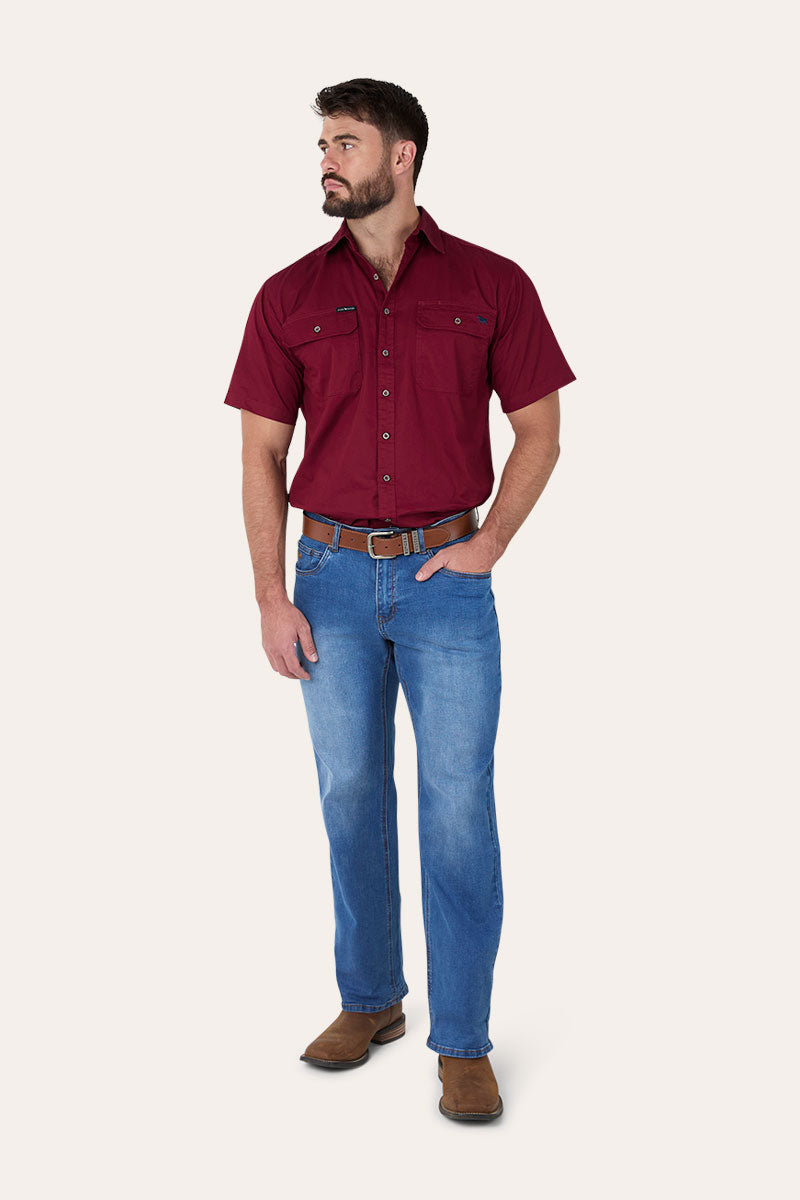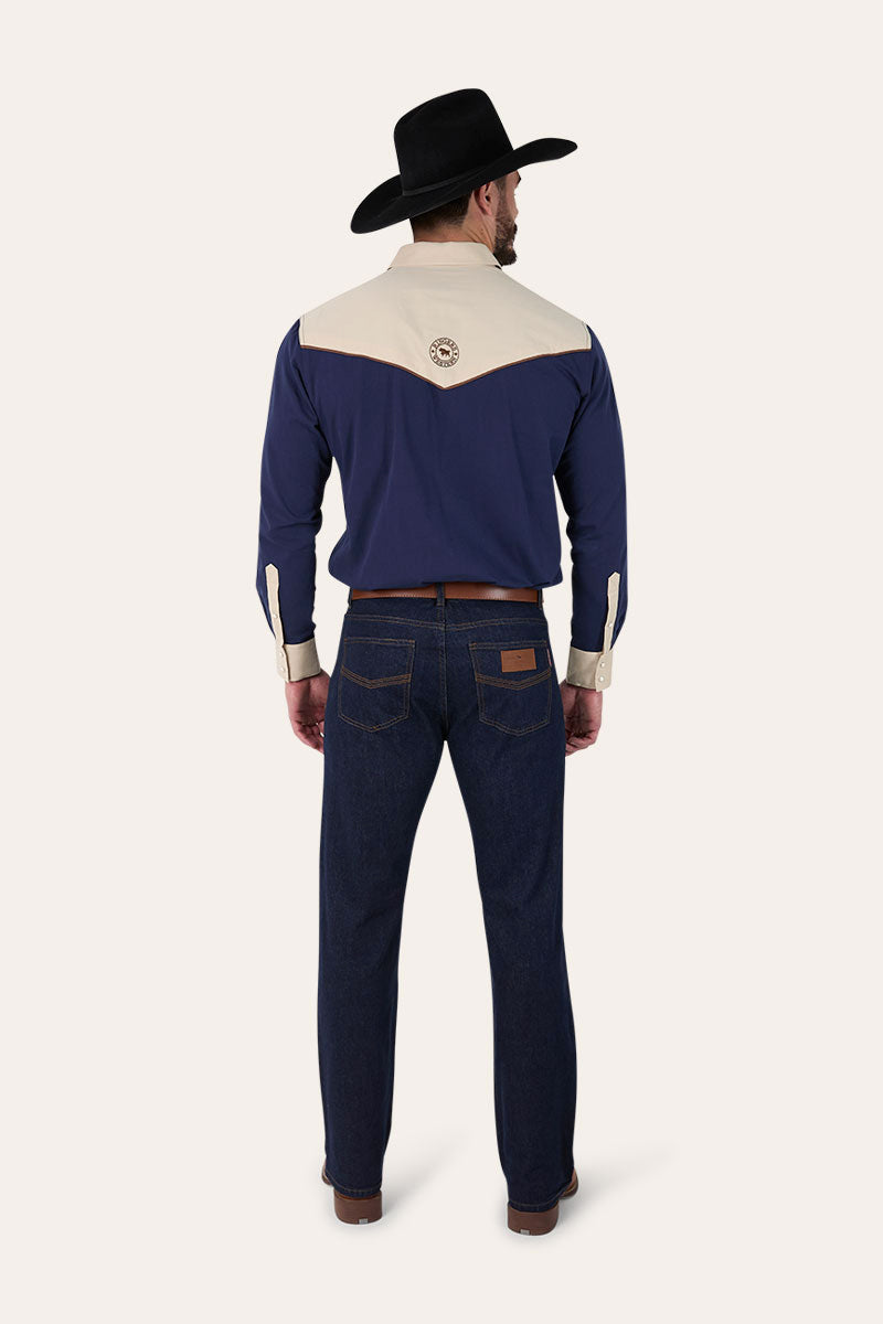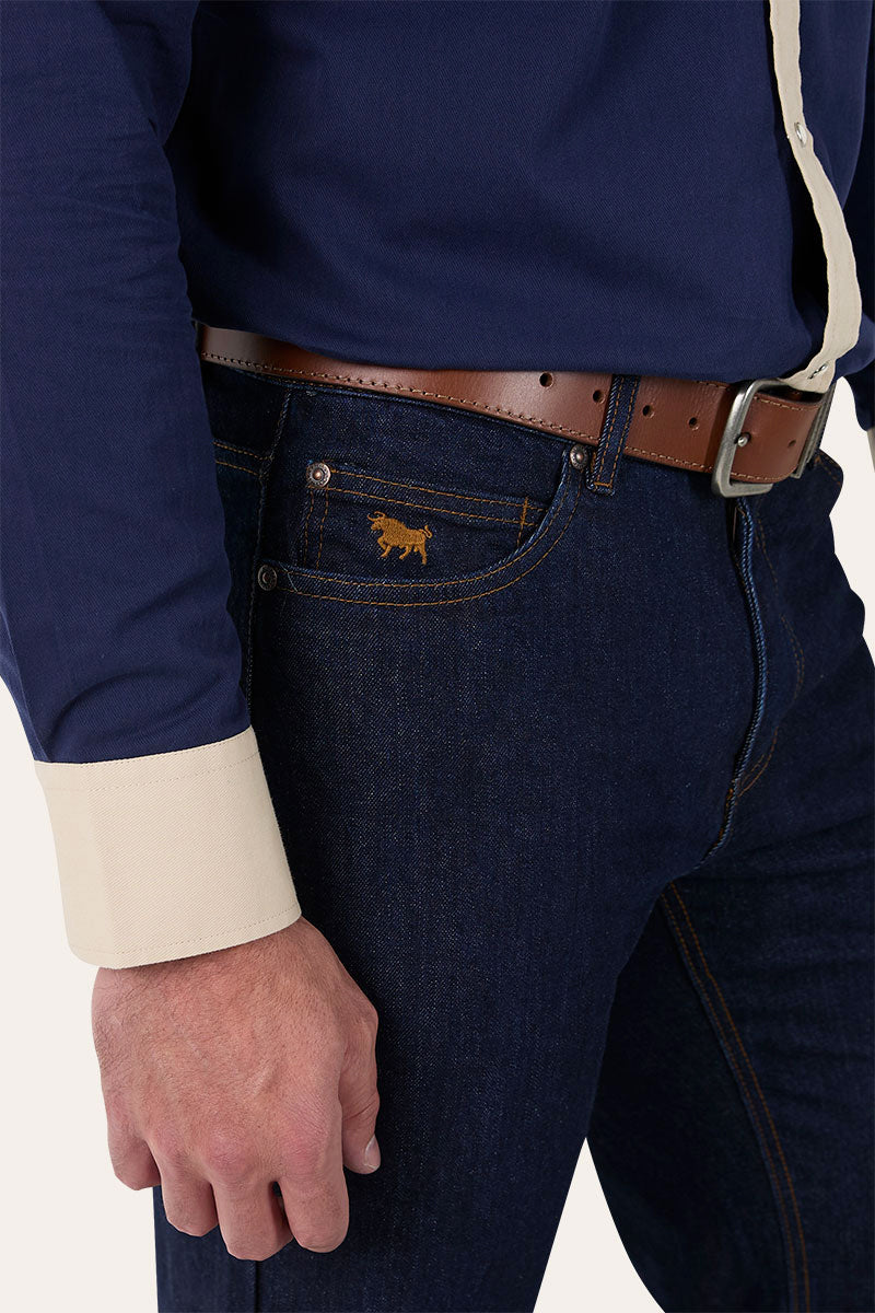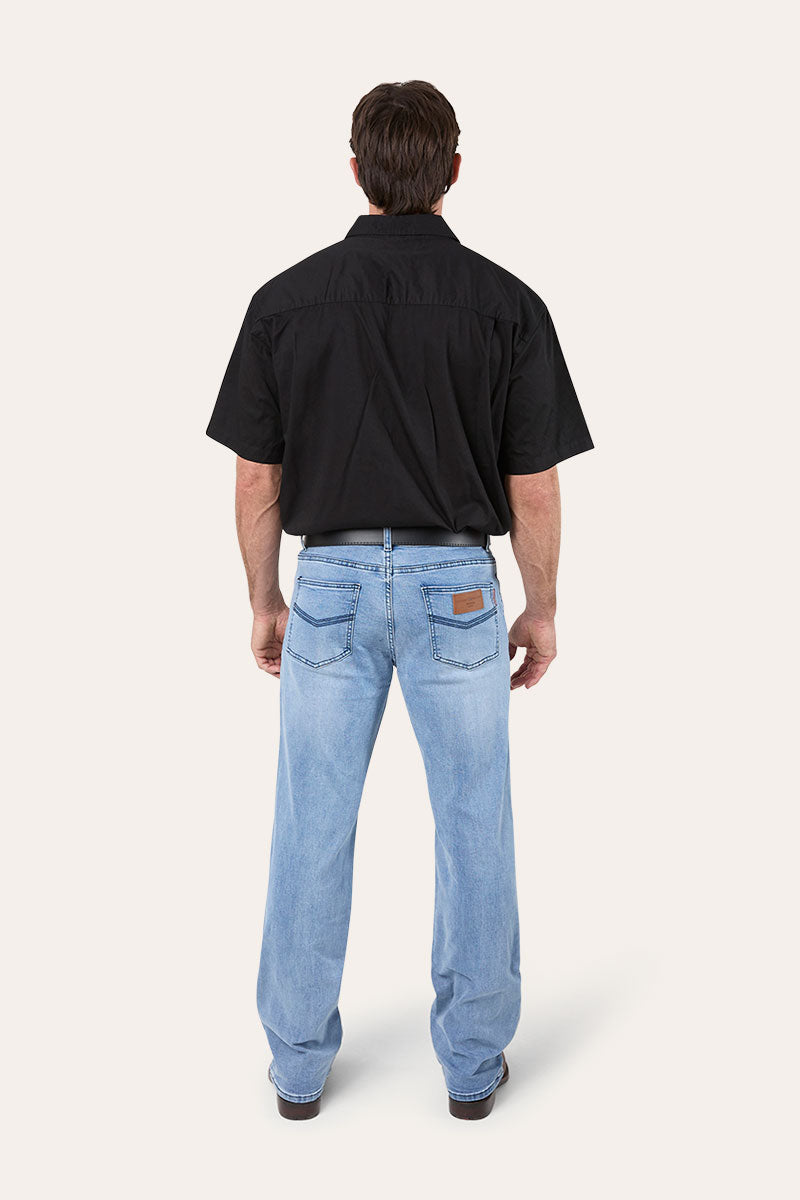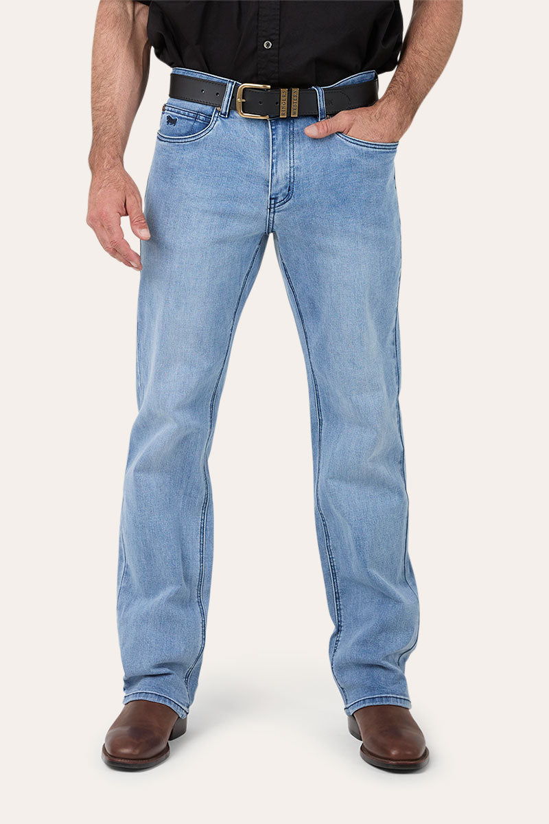 When it comes to traditional 'cowboy-style' denim jeans, the Ringers Western Sturt is all that and more. Made with ultra-high-quality stretch denim and with a relaxed fit through the hip, seat, and thigh, the Sturt Men's Leg Jeans are a 'must-have' for every cowboy's wardrobe.