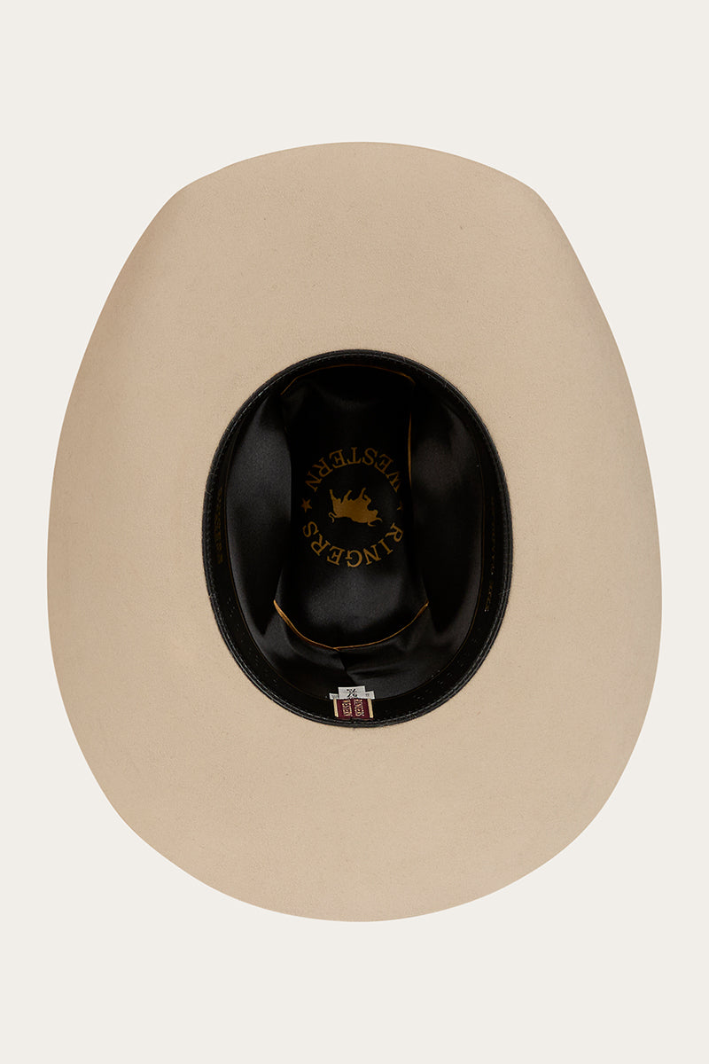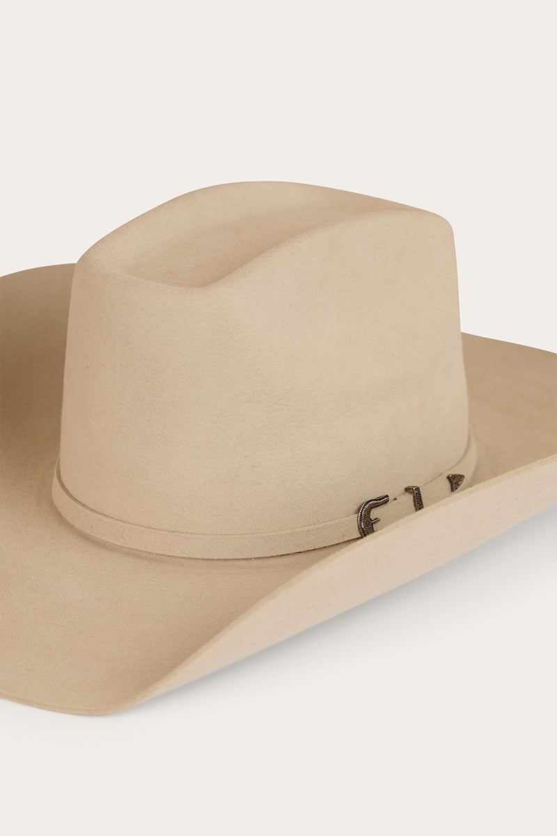 Expertly handcrafted in Mexico from premium 10X beaver felt, the Gambler blends superior durability, weather resistance, and a luxuriously smooth finish, setting a new standard in high-end Western hats. The distinctive dollar crown silhouette offers generous headroom and commanding style, while an internal leather sweatband ensures a secure, tailored fit — ideal for long rides or high stakes evenings at the poker table.