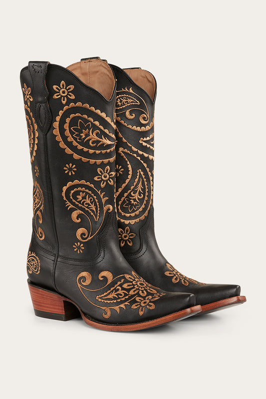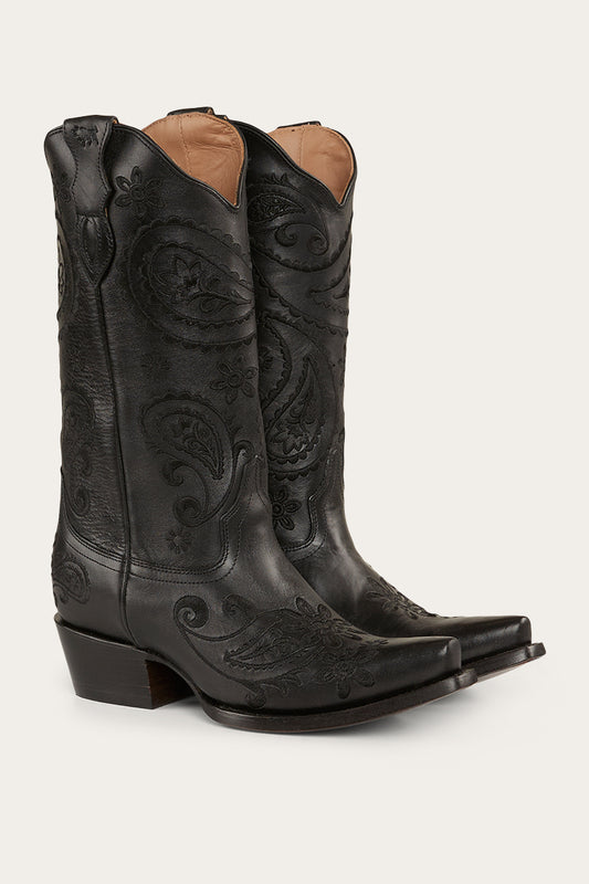 Olivia Womens Cuban Heel Western Boot - Black/Black