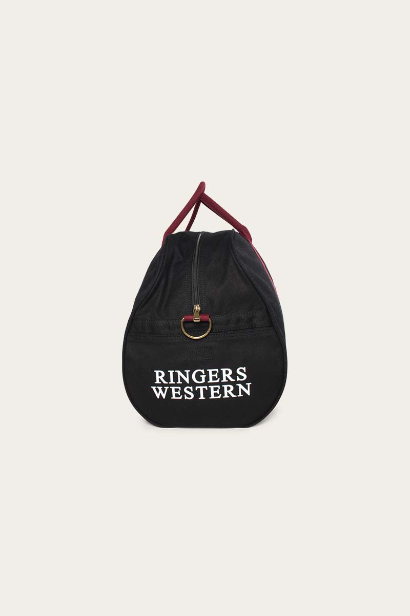 Gundagai Duffle Bag - Black & Maroon with White Print