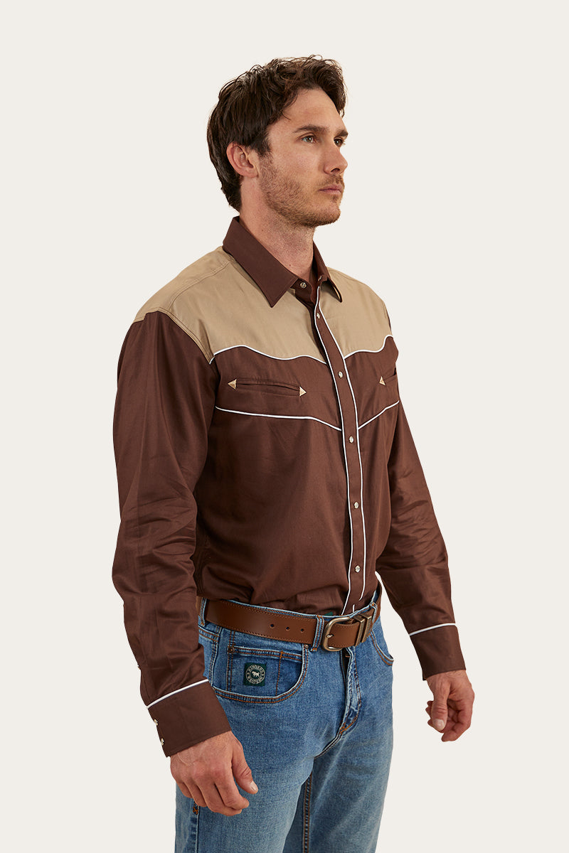 McGraw Mens Western Shirt - Chocolate/Dark Sand
