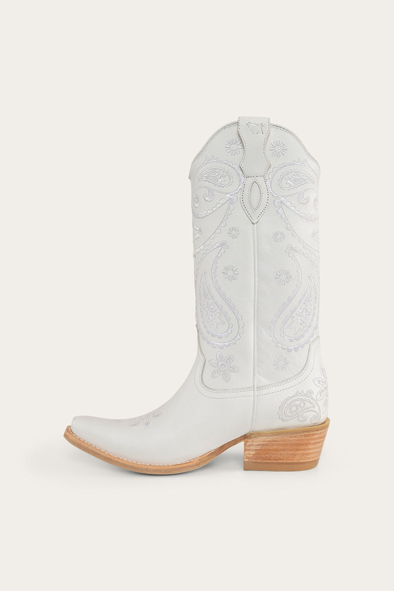 Turn heads and take strides with these tall embroidered boots—the ultimate statement piece for anyone looking to channel Western charm.