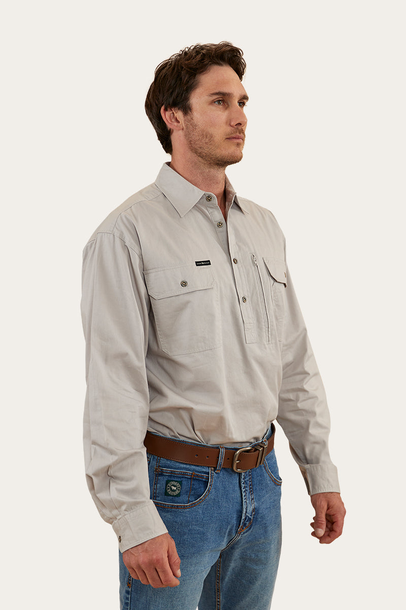 Tempest Men's Half-Button Work Shirts from Ringers Western are designed to set the standard in quality and performance. Crafted from lightweight, 100% premium cotton, this superbly made men’s work shirt is breathable and comfortable for long workdays. Its loose fit ensures freedom of movement, while the UPF 50+ rating offers sun protection, even in the harshest summer heat. Equipped with two chest pockets, a zippered pocket for secure storage, and a pen holder, this shirt combines style with practicality, making it an "essential" for any rugged outdoor task.