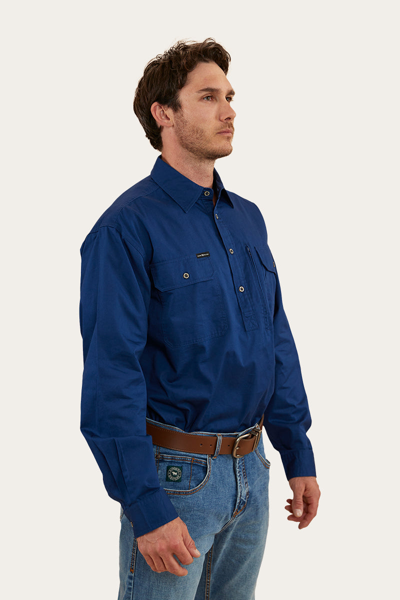 Designed for tough conditions, the Tempest Men's Half-Button Work Shirt from Ringers Western combines durability and comfort in one. Made from premium 100% cotton, these lightweight work shirts offer breathability and a loose fit for unrestricted movement. With a UPF 50+ rating, it provides essential protection from the sun, and the half-button closure makes it easy to wear. Complete with dual chest pockets, a secure zippered pocket, and a pen holder, it's a work shirt that offers everything you need to work efficiently and comfortably in any environment.