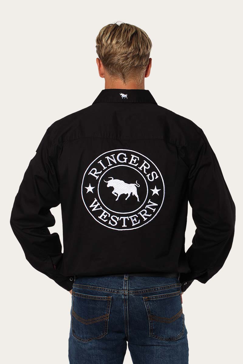 Ringers Western’s Hawkeye Men's Full Button Work Shirt is designed to tackle the elements and look good doing it. Crafted from 100% cotton, this work shirt offers a lightweight, breathable feel that’s ideal for warm days. With UPF 50+ sun protection, it keeps you safe from UV rays, while the loose fit ensures freedom of movement. Featuring double breast pockets for easy storage and detailed with signature Ringers Western logos, this work shirt is a reliable choice for men who work hard.